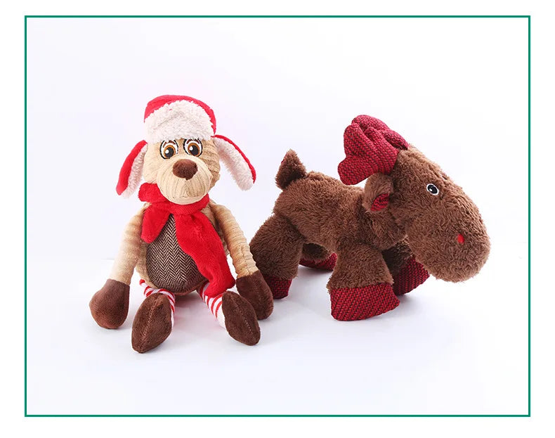 Introducing your furry friend's new holiday buddy, the Christmas Elk! This pet Christmas toy will bring joy and entertainment to your beloved animal during the festive season. Watch as they prance and play with their new elk pal. Perfect for pet owners looking to add some festive fun to their furry family member's holiday experience!