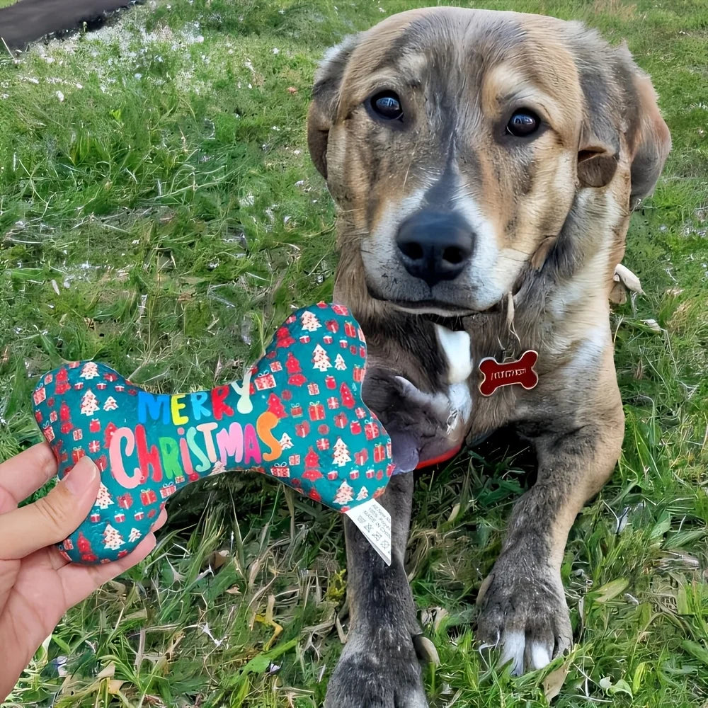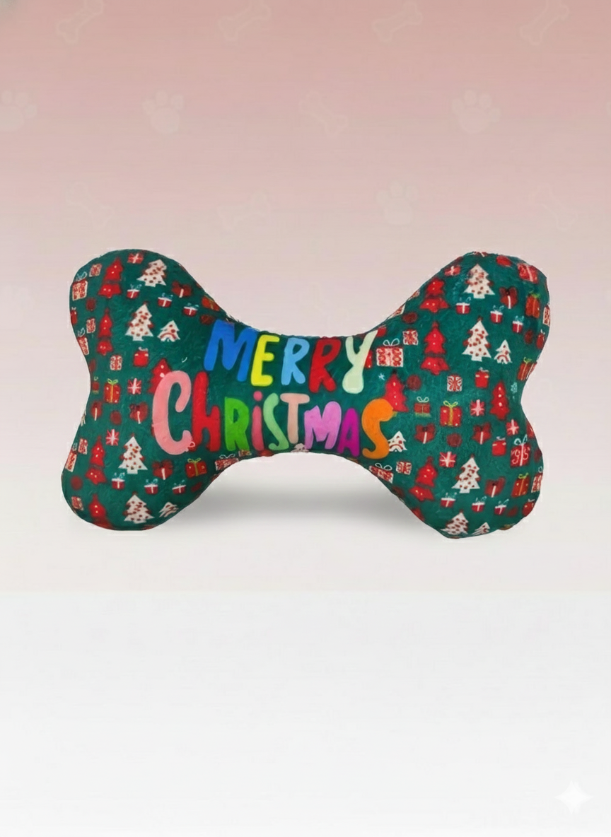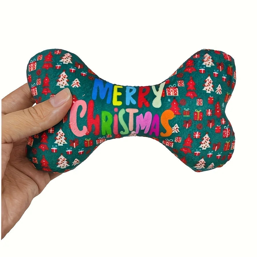 MCh Bone Toy with Double-Sided Printing, Squeaky Pet Bone Christmas Main Body Toy